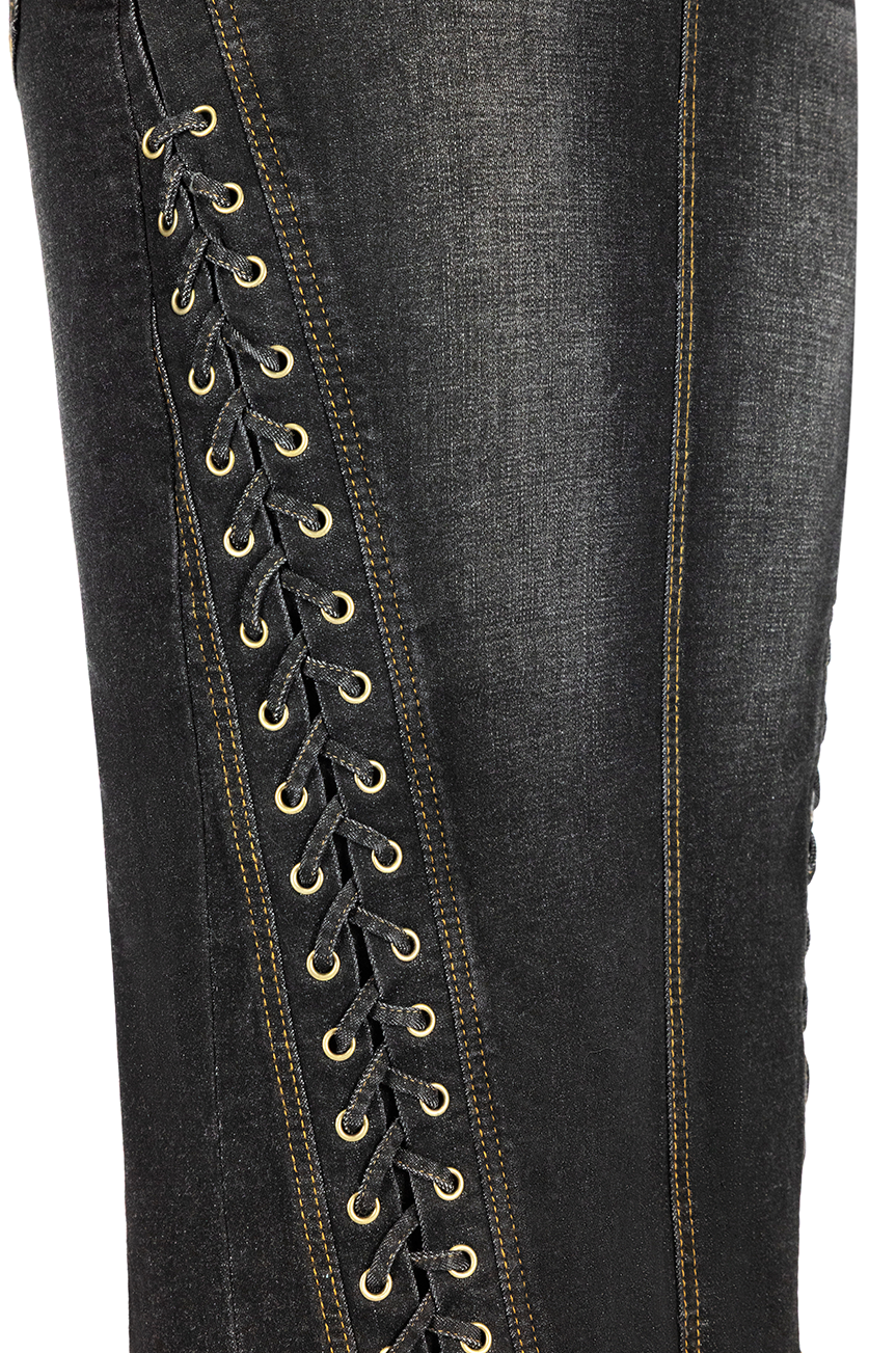 Panelled sides sculpt the hips, while a line of intricate braid detailing runs forward from the side seams - drawing the eye inward and creating the most flattering line. A raw-edge hem adds just the right amount of rebellious charm, while belt loops and back pockets keep her practical for everyday wear (or joyrides with the top down).