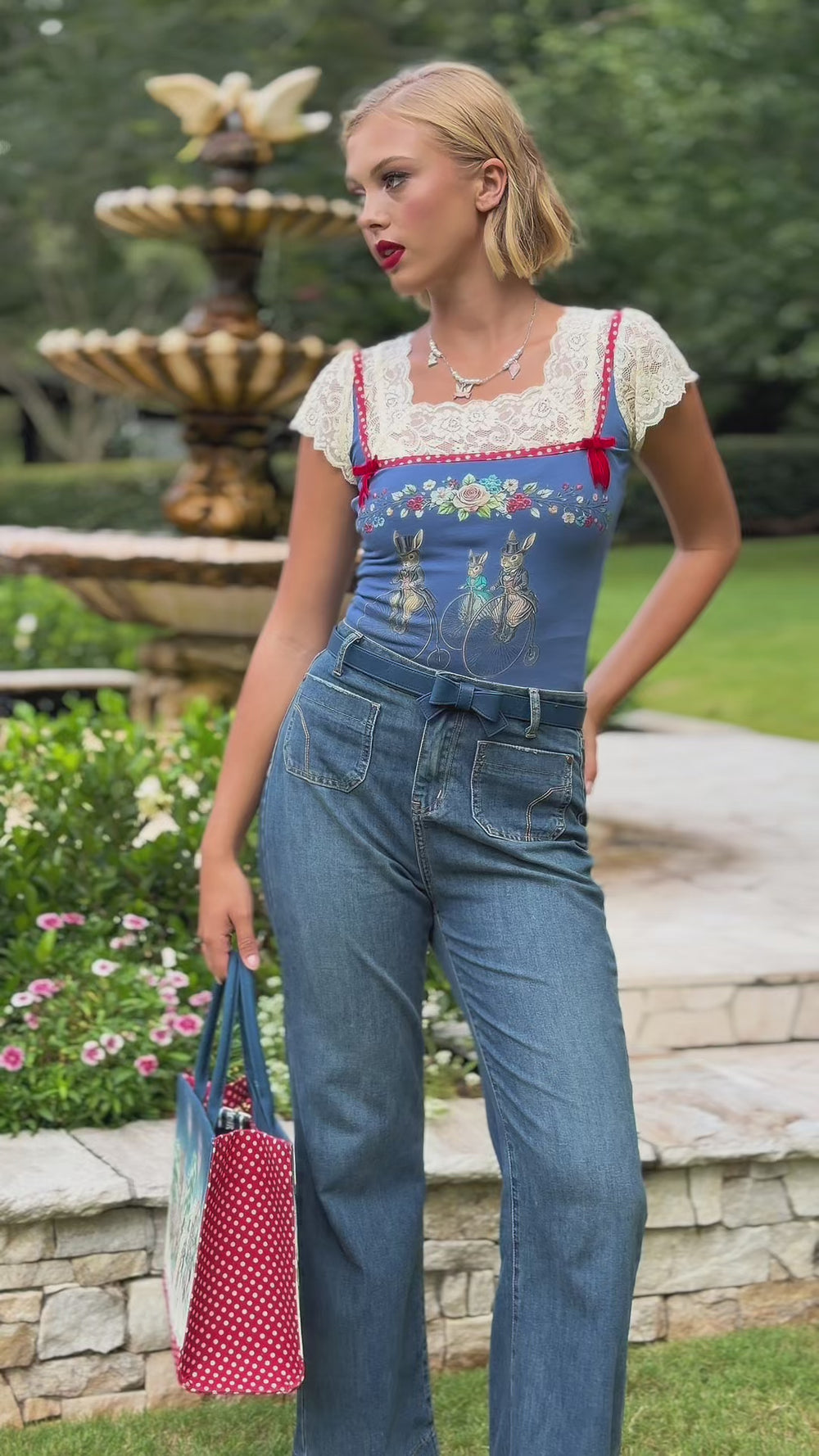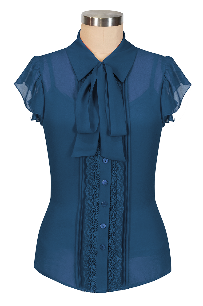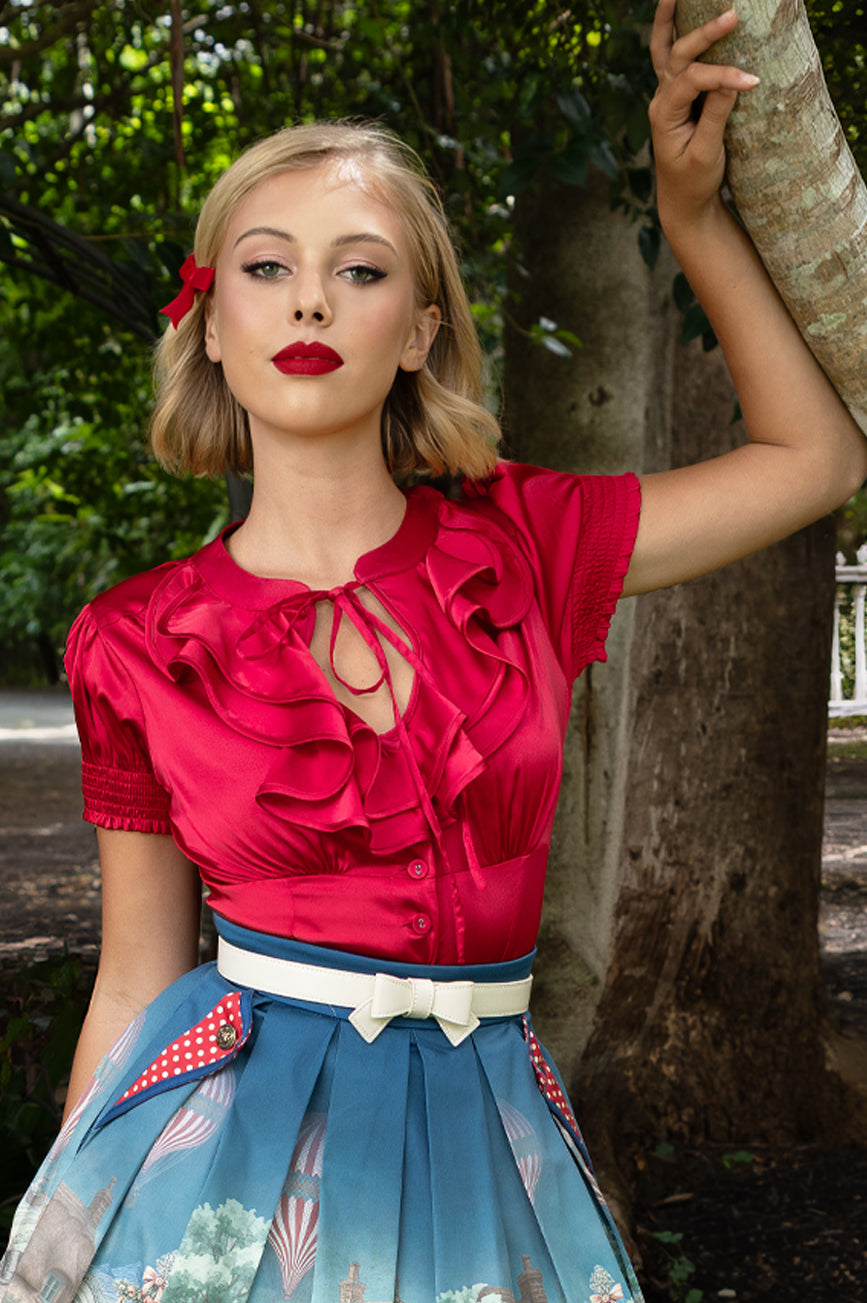 D'Amour Satin Frill Front Blouse (Teal Blue)