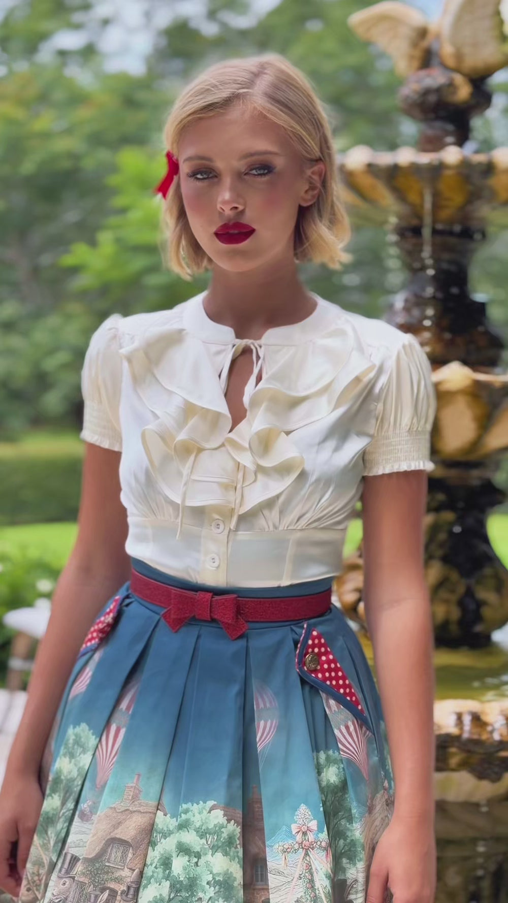 D'Amour Satin Frill Front Blouse (Vanilla)
