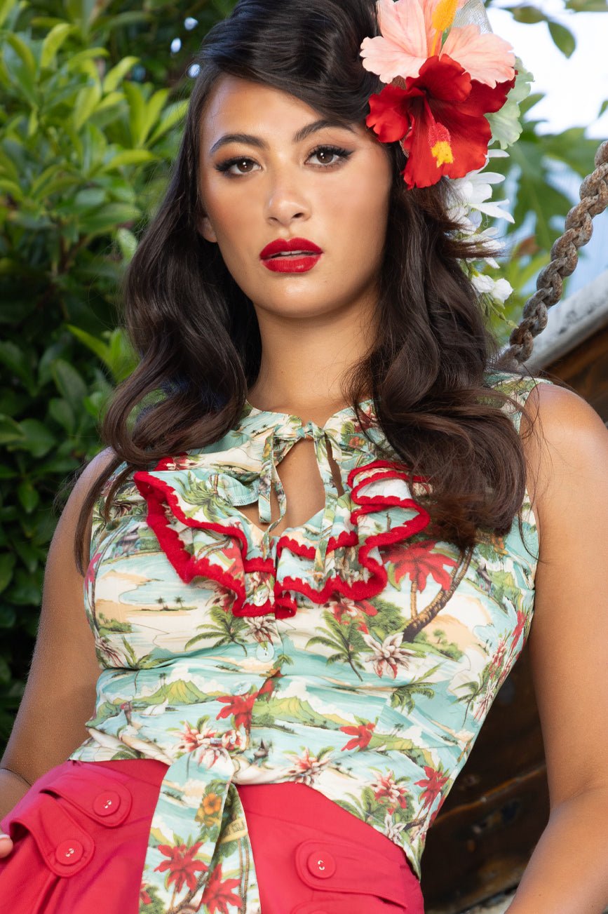 Tiki Island Frill Tie Top