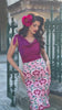 Two rich fuchsia velvet bows rest gracefully at the top of the bustle, a flirtatious wink to the elegance of old-world couture. Fully lined and finished with a neat centre-back zip. .