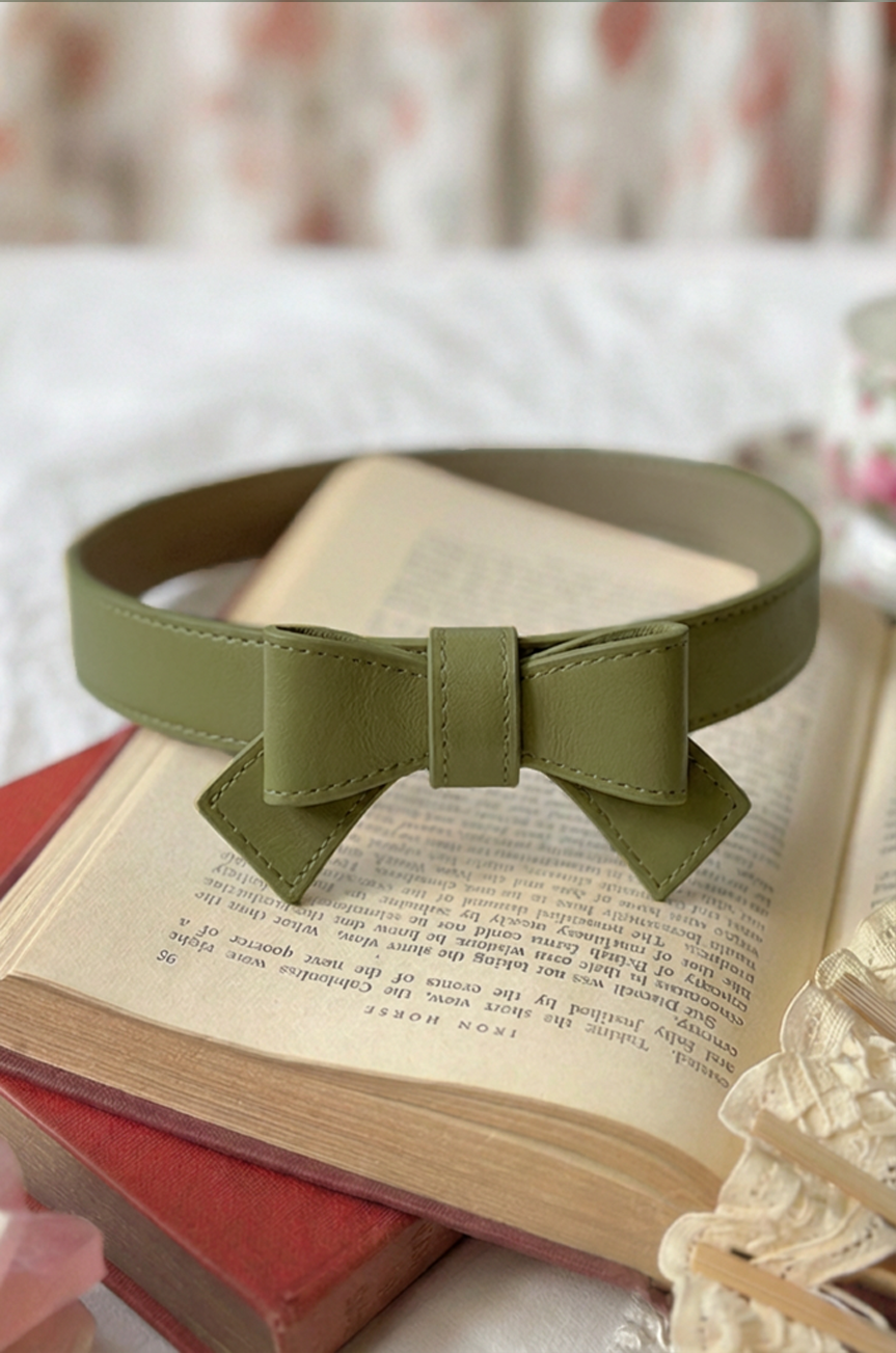 Add a touch of vintage-style glamour to your look with the ‘Pretty Kitty’ Follies Bow Belt in Olive - a must-have for every Kitten’s wardrobe! Inspired by the cinched waists of the 1950s, this design features a statement bow with elegant tails, all crafted in vegan-friendly leather.
